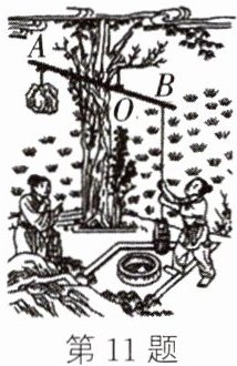 11. (2023·邳州期中)如图所示是我国传统提水工具“桔槔”,用绳子系住一根直的硬棒的O点作为支点,A端挂有重为40N的石块,B端挂有重为20N的空桶,OA长为1.2m,OB长为0.6m。使用时,人向下拉绳放下空桶,装满重为100N的水后向上拉绳缓慢将桶提起,硬棒质量忽略不计。下列说法中正确的是(