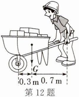 12. (2024·随州期末)用独轮车搬运砖头,车箱和砖头所受的总重力为G,工人用竖直向上的力F使独轮车缓慢抬起。有关数据如图所示,独轮车是
