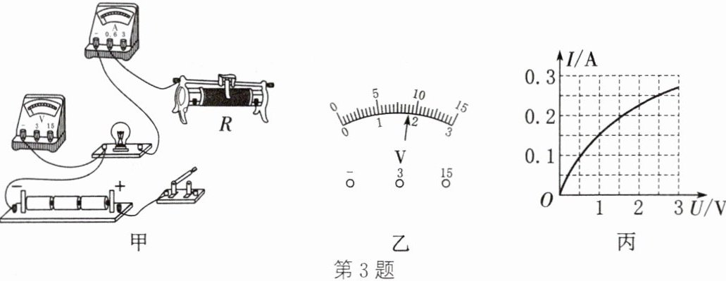 $V$。要测量小灯泡正常发光时的电阻,应将图甲中滑动变阻器的滑片向右