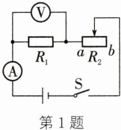 1. 如图所示的电路中,电源电压为6V且保持不变,定值电阻$R_{1}$的阻值为10Ω,滑动变阻器$R_{2}$的最大阻值为20Ω,当开关闭合、滑片由b端向a端移动的过程中,求:电流表和电压表的示数变化范围。