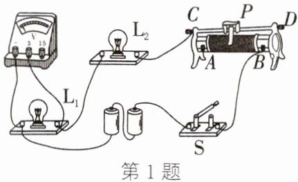 1. 如图所示的电路,闭合开关,观察发现灯泡 $ L_1 $ 亮、$ L_2 $ 不亮,调节滑动变阻器滑片 $ P $,灯泡 $ L_1 $ 的亮度发生变化,但灯泡 $ L_2 $ 始终不亮,出现这一现象的原因可能是 (