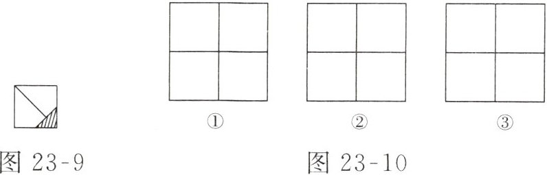 14. (14 分)用四块如图 23 - 9 所示的正方形卡片拼成一个新的正方形,使拼成的图案是一个轴对称图形,请你在图 23 - 10①②③中各画出一种拼法(要求三种拼法各不相同),且其中至少有一种既是轴对称图形又是中心对称图形.