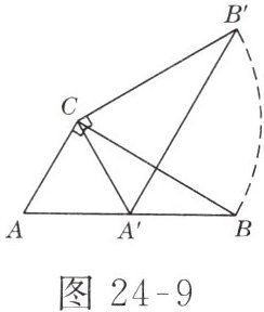 13. 如图 24-9 所示,在三角形$ABC$中,$\angle ACB = 90^{\circ}$,$\angle ABC = 30^{\circ}$,$BC = 6$,三角尺绕直角顶点$C$逆时针旋转,当点$A的对应点A'落在AB$边上时即停止转动,则点$B$转过的路径长为______.
