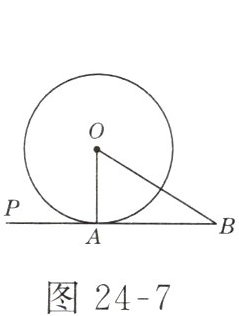9. 如图 24-7 所示,$PB为\odot O$的切线,$A$为切点,$OB = 2\ cm$,$\angle B = 30^{\circ}$,则$AB = $______.