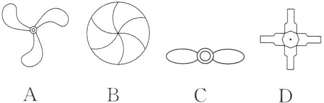 D 解析:A,B,C三项经过旋转之后都能得到$\triangle A'B'C'$,只有D不能,它是通过翻折得到的.