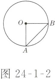 5. 如图24-1-2所示,已知圆的半径为2,弦AB的长为$ 2\sqrt{2} $,则$ ∠AOB $的大小为