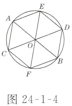 4. 如图24-1-4所示,AB,CD,EF是$ \odot O $的三条直径,且$ ∠AOE = ∠EOD = ∠BOD = 60° $,若$ AB = 10 cm $,则六边形ACFBDE的周长为(