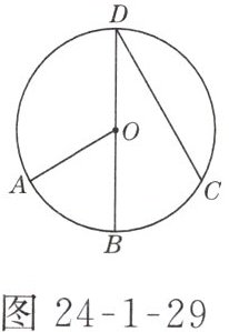 3. 如图 24-1-29,已知$BD是\odot O$的直径,点$A$,$C在\odot O$上,$\overset{\frown}{AB} = \overset{\frown}{BC}$,$\angle AOB = 60^{\circ}$,则$\angle BDC$的度数是(