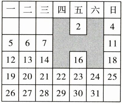 10. 某月的月历如图所示,任意选取“H”形框中的$7$个数(如阴影部分所示),请你运用所学的数学知识来研究,发现这$7$个数的和不可能是(