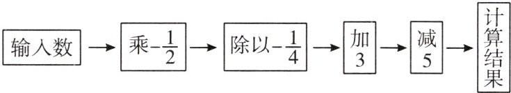 4. 如图,某数学活动小组编制了一道有理数混合运算题,即输入一个有理数,按照自左向右的顺序运算,可得计算结果,若输入的数为 $-5$,则计算结果为
