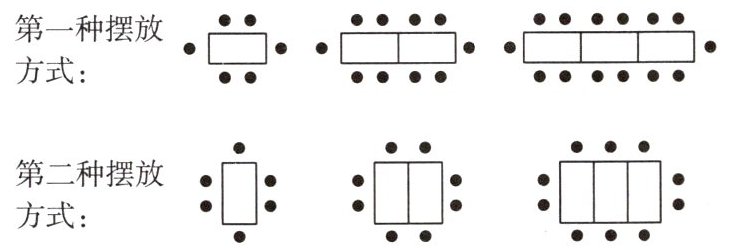 (2)当有$n$张桌子时,用代数式分别表示第一种摆放方式和第二种摆放方式能坐的人数.
