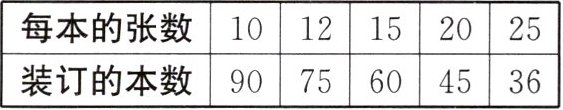 用一批纸装订练习本,每本练习本的张数和装订的本数如下表.