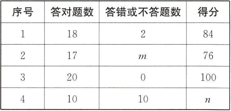 【典型例题 1】某小组 5 名同学参加一次知识竞赛,共答 20 道题,每题分值相同,答对得分,答错或不答扣分,下表是 4 名同学的得分情况: