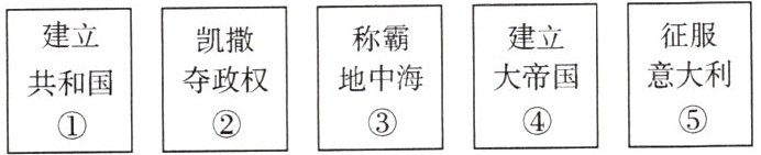 C 解析:本题考查学生的识记归纳能力。公元前509年,罗马建立了共和国;公元前3世纪初,罗马征服了意大利半岛;公元前2世纪,罗马成为地中海霸主;公元前49年,凯撒夺取罗马共和国政权;公元前27年,罗马共和国被罗马帝国所取代。可见,它们按时间发生的先后顺序排列是①⑤③②④。