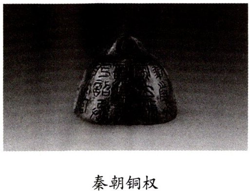 材料二 铜权周身刻有秦始皇二十六年诏书铭文40字。经拓印后,可辨识其内容为:“廿六年,皇帝尽并兼天下诸侯,黔首大安,立号为皇帝,乃诏丞相状、绾,法度量则不壹歉疑者,皆明壹之。”