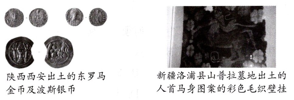 (1)材料一是丝绸之路上出土的文物图片,你能从这些图片中得出关于丝绸之路的什么信息?