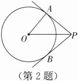 2. 如图,$P是\odot O$外一点,$PA$,$PB与\odot O$相切,$A$,$B$是切点.若$\angle POA = 50^{\circ}$,则$\angle APB$的度数是(