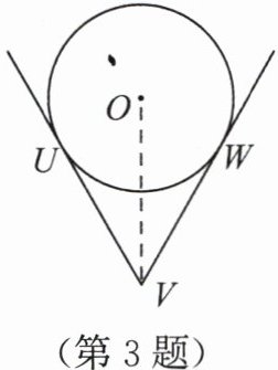 3. 一根钢管放在V形架内,其截面如图所示,$O$为钢管的圆心,$U$,$W$是切点.若钢管的半径为$25\mathrm{cm}$,$\angle UVW = 60^{\circ}$,则$VW$等于(