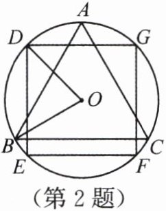 2. 如图,$ \triangle ABC $ 是 $ \odot O $ 的内接正三角形,四边形 $ DEFG $ 是 $ \odot O $ 的内接正方形,且 $ BC // EF $,则 $ \angle BOD $ 的度数为(