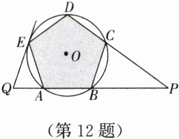 12. 如图,五边形 $ ABCDE $ 是 $ \odot O $ 的内接正五边形,延长 $ AB $,$ DC $ 交于点 $ P $,过点 $ E $ 作 $ \odot O $ 的切线,交 $ BA $ 的延长线于点 $ Q $.