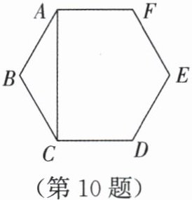 10. 如图,正六边形 ABCDEF 的边长为 2,连接 AC,则 AC 的长为