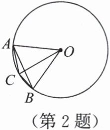 2. 如图,AB 是$\odot O$的弦,点 C 在$\overset{\frown}{AB}$上,$\angle AOB = 60^{\circ}$,$\angle AOC = 36^{\circ}$,下列结论: