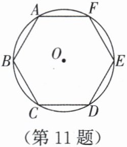 11. 如图,$\odot O的周长等于8\pi cm$,正六边形 ABCDEF 内接于$\odot O$.