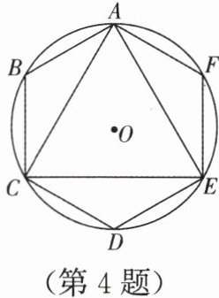 4. (2023,杭州,14)如图,六边形 ABCDEF 是$\odot O$的内接正六边形,设正六边形 ABCDEF 的面积为$S_1$,$\triangle ACE的面积为S_2$,则$\frac{S_1}{S_2}= $