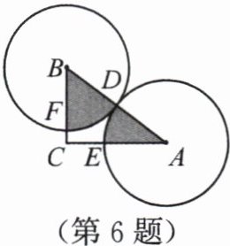 6. 如图,在 $\triangle ABC$ 中,$AC = 8$,$BC = 6$,$AB = 10$,$D$ 是 $AB$ 的中点,以点 $A$ 为圆心,$AD$ 为半径画 $\odot A$ 交 $AC$ 于点 $E$,以点 $B$ 为圆心,$BD$ 为半径画 $\odot B$ 交 $BC$ 于点 $F$.求 $S_{扇形ADE} + S_{扇形BDF}$.