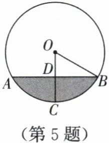 5. 如图,已知 $\odot O$ 的半径为 $10\ cm$,弦 $AB$ 垂直平分半径 $OC$,并交 $OC$ 于点 $D$.求 $\overset{\frown}{AB}$的长,并求出图中阴影部分的面积.