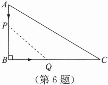 6. 如图,在 $ \triangle ABC $ 中,$ \angle B = 90° $,$ AB = 12 mm $,$ BC = 24 mm $,动点 $ P $ 从点 $ A $ 开始沿边 $ AB $ 向点 $ B $ 以 2 mm/s 的速度移动(不与点 $ B $ 重合),动点 $ Q $ 从点 $ B $ 开始沿边 $ BC $ 向点 $ C $ 以 4 mm/s 的速度移动(不与点 $ C $ 重合). 如果点 $ P $,$ Q $ 分别从点 $ A $,$ B $ 同时出发,那么第几秒时,四边形 $ APQC $ 的面积最小?面积的最小值是多少?