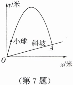 7. (2024,江西,22)如图,一小球从斜坡点 $ O $ 以一定的方向弹出,球的飞行路线可以用二次函数 $ y = ax^2 + bx(a < 0) $ 刻画,斜坡可以用一次函数 $ y = \frac{1}{4}x $ 刻画,小球飞行的水平距离 $ x $(米)与小球飞行的高度 $ y $(米)的变化规律如下表:
