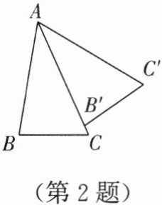 2. (2024, 无锡, 8) 如图, 在$\triangle ABC$中,$\angle B = 80^{\circ}$,$\angle C = 65^{\circ}$, 将$\triangle ABC绕点A逆时针旋转得到\triangle AB'C'$. 当$AB'落在AC$上时,$\angle BAC'$的度数为(