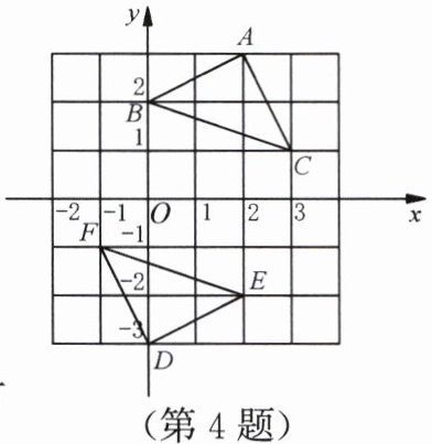 4. 如图,在平面直角坐标系中,若$\triangle ABC与\triangle DEF关于点H$成中心对称,则对称中心点$H$的坐标是(