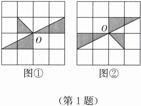 将图①中的图案绕点O旋转180°得到图②中的图案。