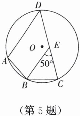 5. (2024,吉林,6)如图,四边形$ABCD内接于\odot O$。过点$B作BE// AD$,交$CD于点E$。若$\angle BEC = 50^{\circ}$,则$\angle ABC$的度数是(