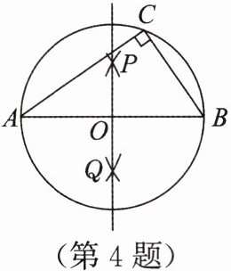 4. 下面是“作已知直角三角形的外接圆”的尺规作图过程: