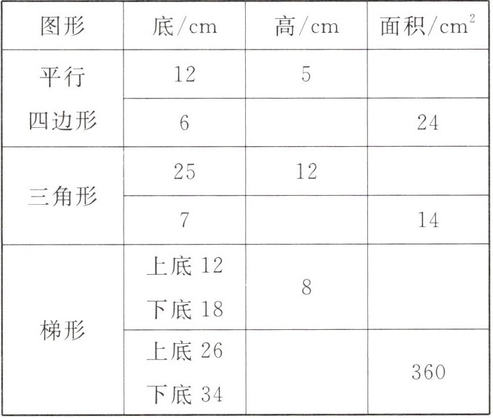 2. 在下面的方格图上画出面积是 12 平方厘米的平行四边形、三角形、梯形各一个。(每个小方格的边长都是 1 厘米)