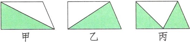 (2)下面三个完全一样的直角梯形中,涂色部分的面积相比较,(