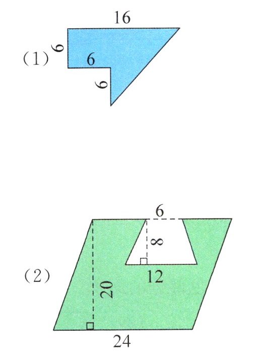 (2)24×20-(6+12)×8÷2=408(dm²)
