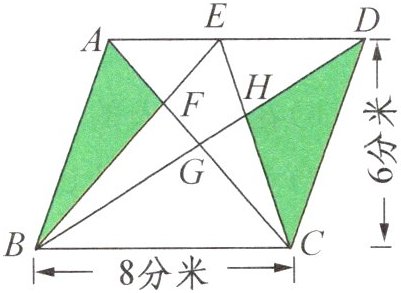 4. 如图,已知平行四边形ABCD的底是8分米,高是6分米,涂色部分的面积是16平方分米。求四边形EFGH的面积。(G是BD的中点)