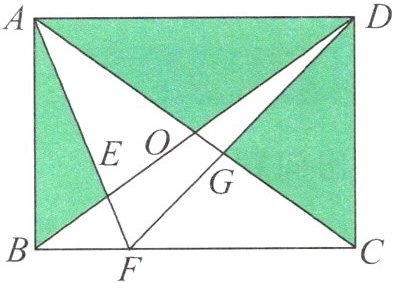 3. 如图,已知长方形ABCD的面积是1200平方厘米,涂色部分的面积是750平方厘米,求四边形EFGO的面积。