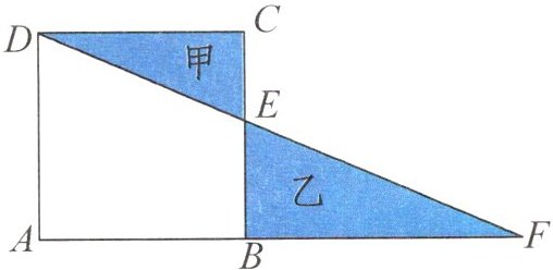 2. 如图,正方形的边长是10厘米,三角形甲的面积比三角形乙的面积少20平方厘米,则线段BF的长是多少厘米?