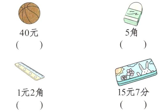 3. 把下面物品的价格写成用“元”作单位的两位小数。