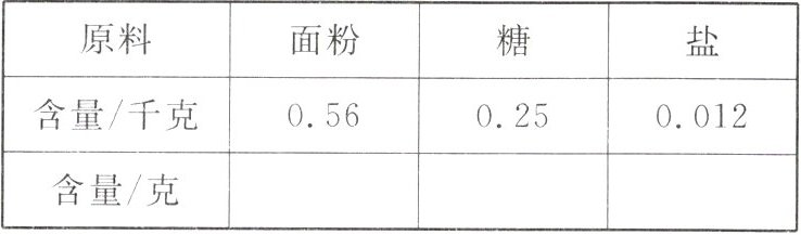 | 含量/千克 | 0.56 | 0.25 | 0.012 |
