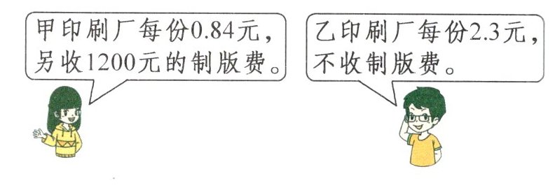 7. 学校要印 1000 份彩页的家长通知书,询问了甲、乙两家印刷厂,如果两家印刷质量一样,到哪家印刷厂印合算?