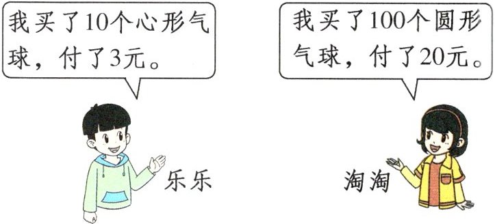 3. 校园艺术节到了,班上要举行联欢会,乐乐和淘淘一起买气球。哪种气球便宜一些?