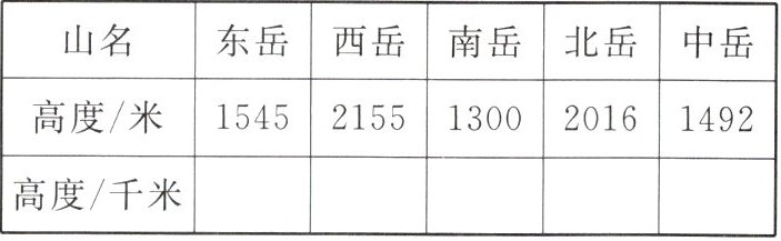 | 高度/米 | 1545 | 2155 | 1300 | 2016 | 1492 |