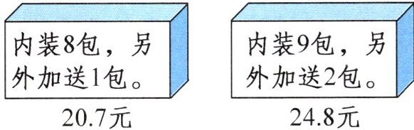 20.7÷(8+1)=2.3(元) 24.8÷(9+2)≈2.25(元) 2.3>2.25 买价格是24.8元的合算