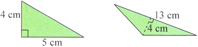 $4×5÷2=10(cm^2)$ $13×4÷2=26(cm^2)$